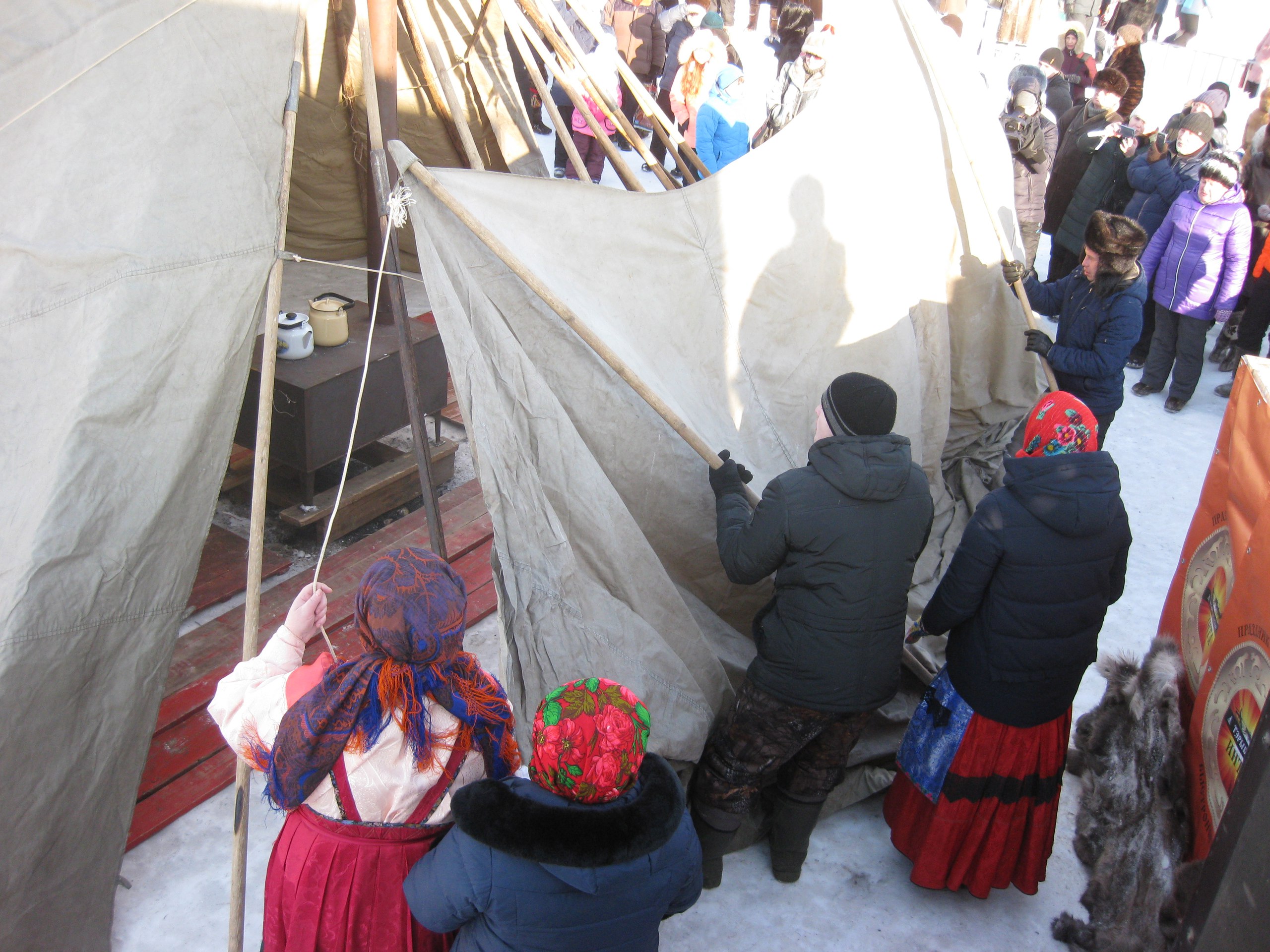 Параллельно метанию аркана шел не менее яркий конкурс «Хозяйка чума». Пока женщины строили и обустраивали по всем правилам национальное жилище, на сцене проходил розыгрыш призов, чередующийся выступлениями артистов. По решению жюри все четыре участницы-хозяйки чума признаны лучшими и получили в подарок мультиварки. А самая молодая чум-работница Валентина Тюкавкина была отмечена специальным призом – декоративной тарелкой с логотипом праздника.