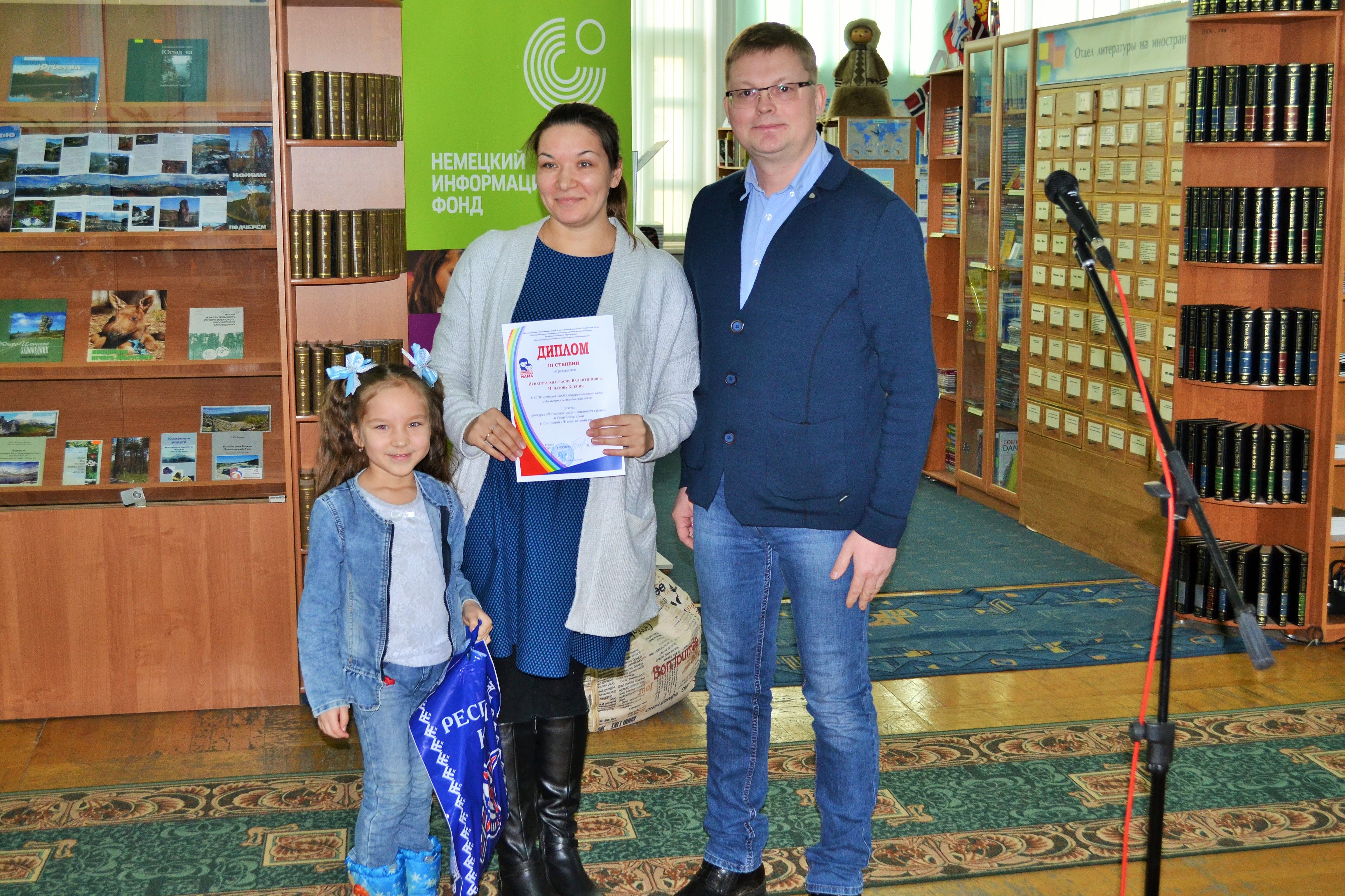 Представитель движения коми народа отметил победителей конкурса в номинации «Чтение на коми языке». За отличное прочтение произведения Виктора Савина «Тӧвся рыт» диплом 1 степени получила семья Поповых из посёлка Визиндор Сысольского района. На втором месте семья Морозовых их села Чухлом Сысольского района. Третье место поделили конкурсанты из Сыктывдинского района Игнатовы (с.Выльгорт) и Шуктомовы (с.Ыб).