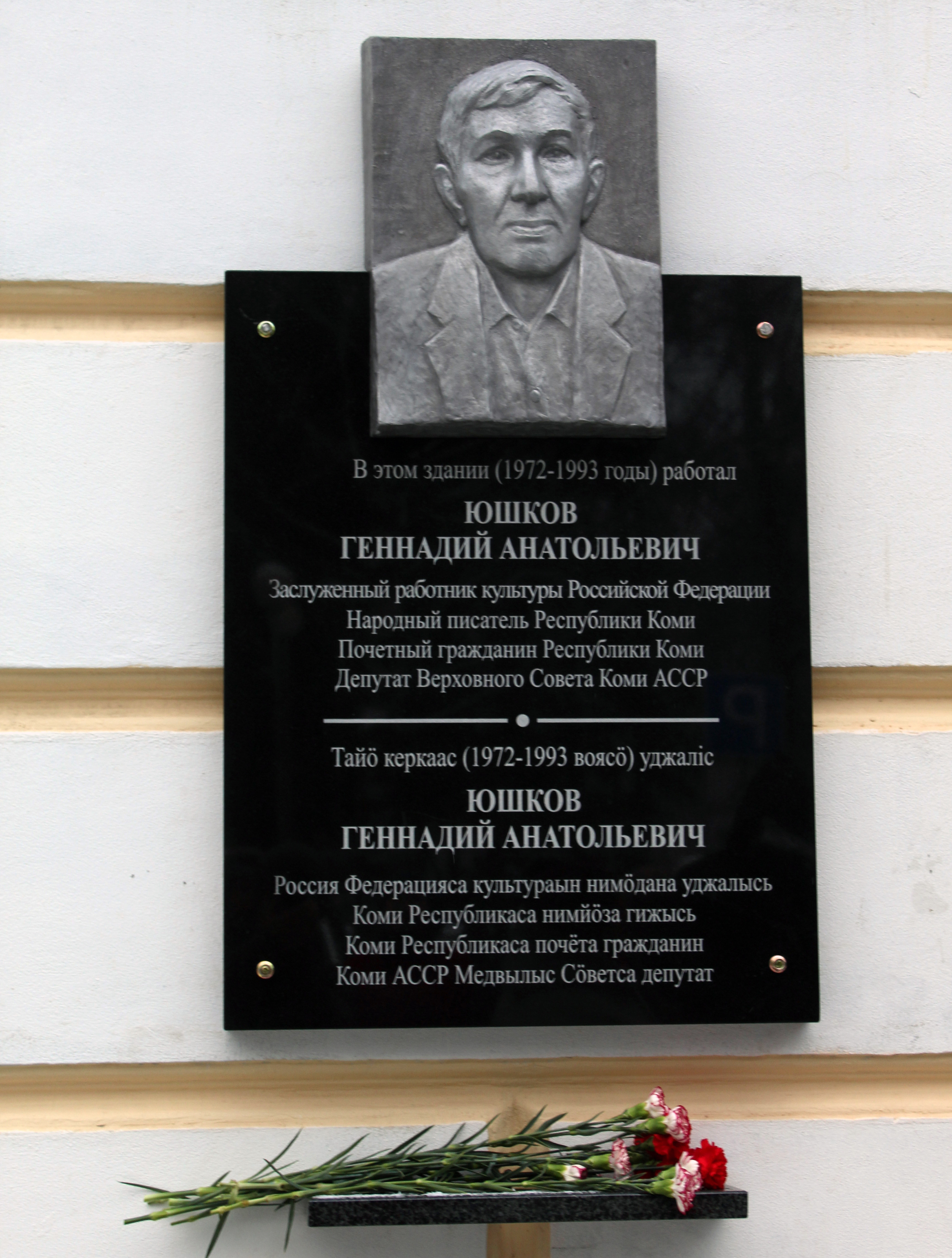 На стене Дома печати в столице Коми появилась еще одна мемориальная доска. Сегодня увековечили народному писателю республики Геннадию Юшкову.