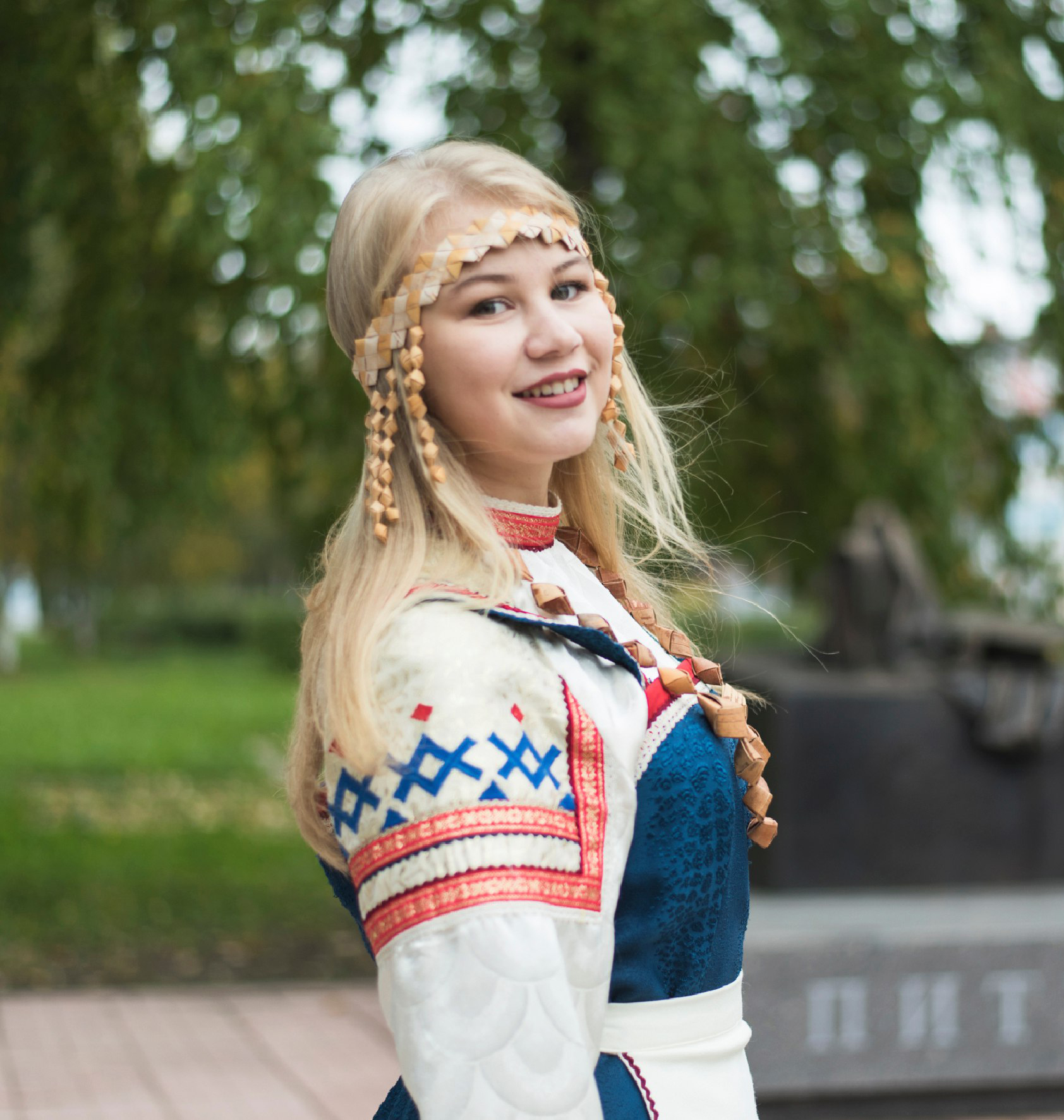 Тӧдмасьӧй, Александра Ногиева — СГУ-са филология факультетын велӧдчысь, «Мисс студенчества Финно-Угрии» конкурсӧ пырӧдчысь.